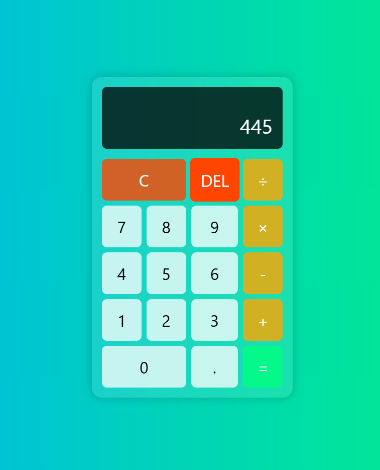 Retour aux projetsDéveloppement d'une calculatrice interactive, interface intuitive, design moderne, opérations de base (addition, soustraction, multiplication, division) et fonctionnalités avancées (suppression, remise à zéro).